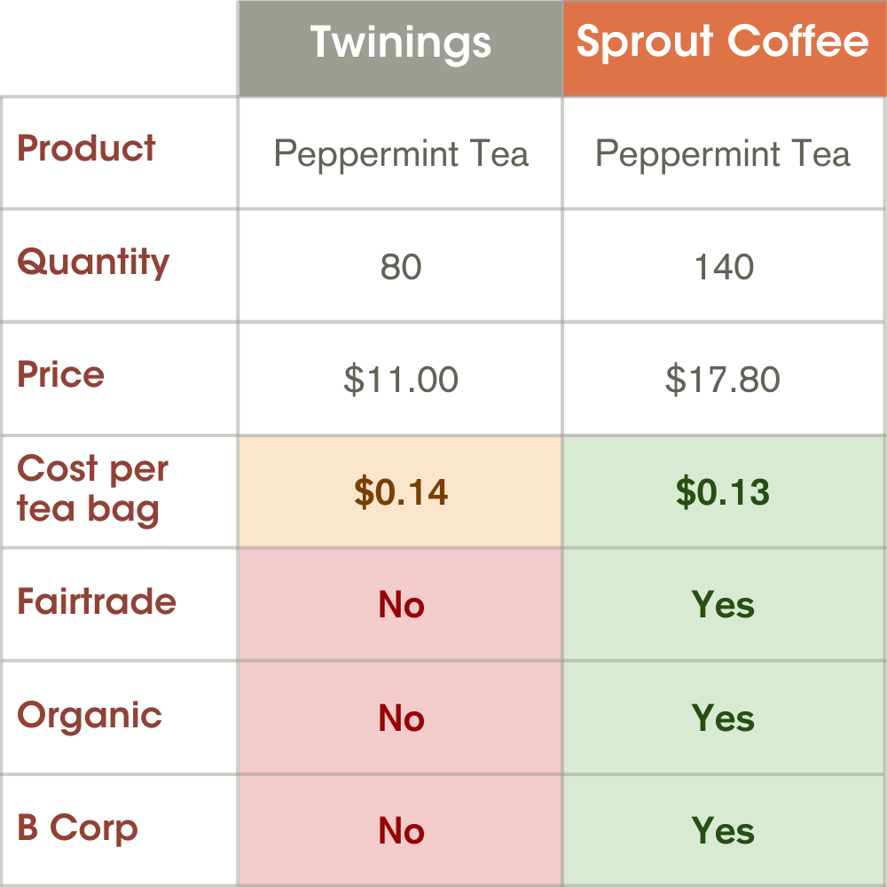 The great news is, with Sprout Coffee's Peppermint Tea, you can do good and save money at the same time!