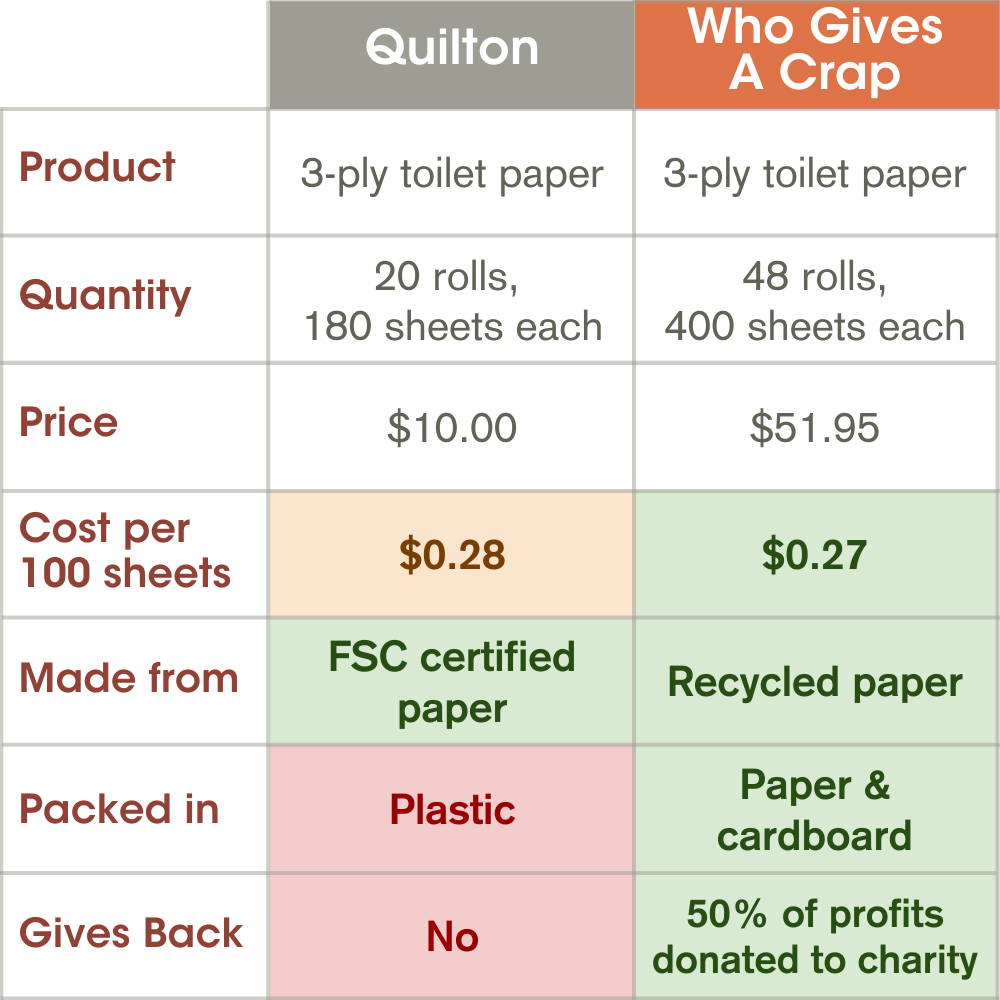 - Who Gives a Crap donates 50% of profits to charity to build toilets & improve sanitation in the developing world