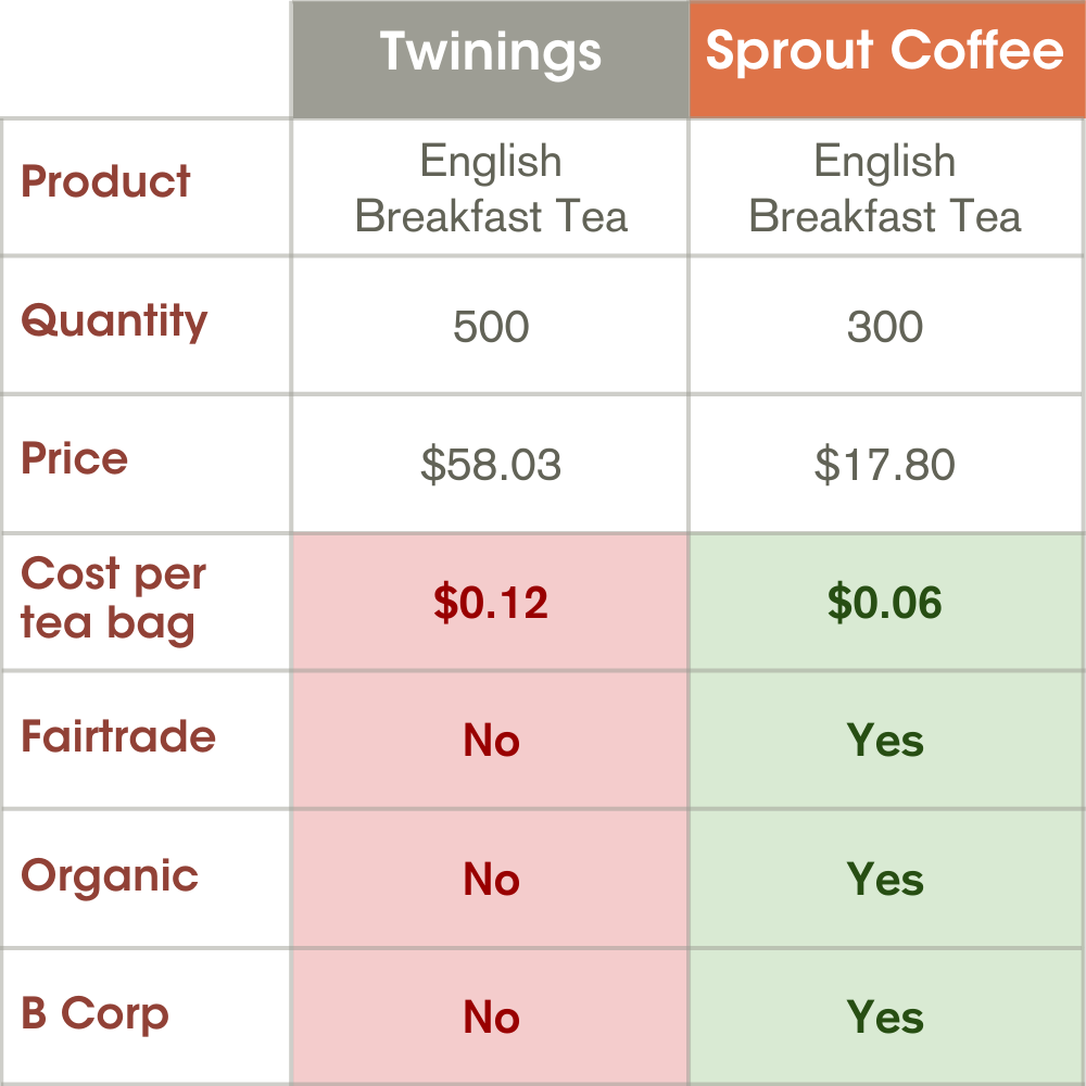 The great news is, with Sprout Coffee's English Breakfast Tea, you can do good and save money at the same time!