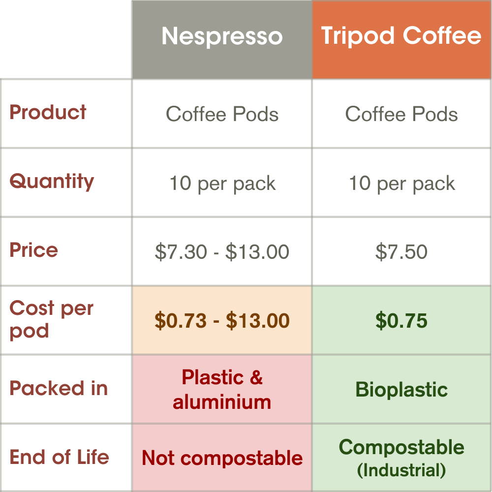 - Pods made from 100% plant-based materials, lids and all. Completely free of aluminium